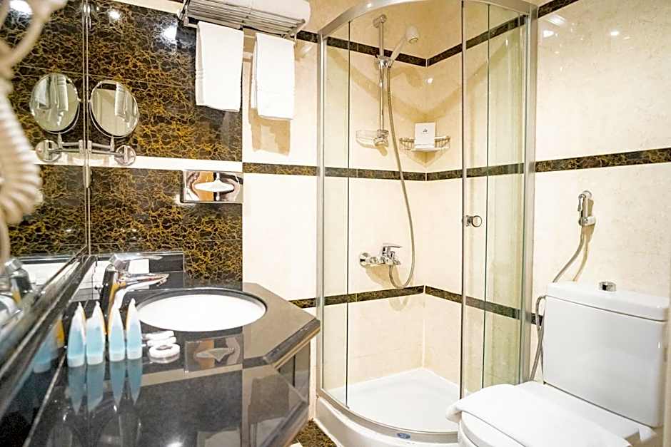 double or twin Haram View is 194 square feet and includes a queen-size bed 150-154 width.